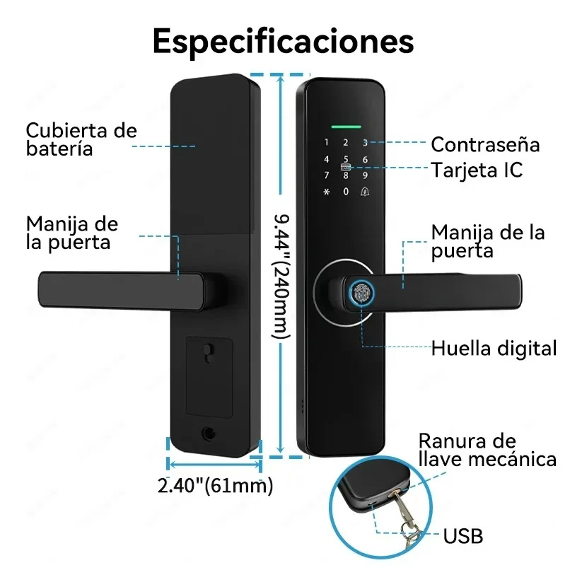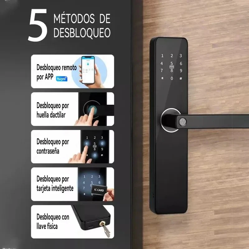 Controla Desde Cualquier Lugar: Gracias a la conectividad Wi-Fi, puedes controlar la cerradura desde cualquier lugar a través de la app Tuya. Cuando alguien presiona el timbre, recibirás una notificación de desbloqueo remoto con una foto. Puedes enviar un código temporal a tus invitados o ingresar el código de desbloqueo remoto para abrir la puerta.