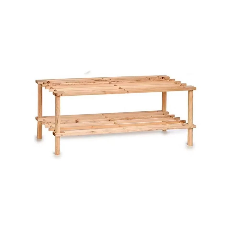 Mueble zapatero de 2 alturas No dejes escapar este zapatero de doble altura de 64cm x 27cm x 30cm. Podrás mantener tus zapatos ordenados. Complemento ideal para una decoración moderna y tradicional. Producto hecho en madera natural, de estructura sencilla y fácil montura